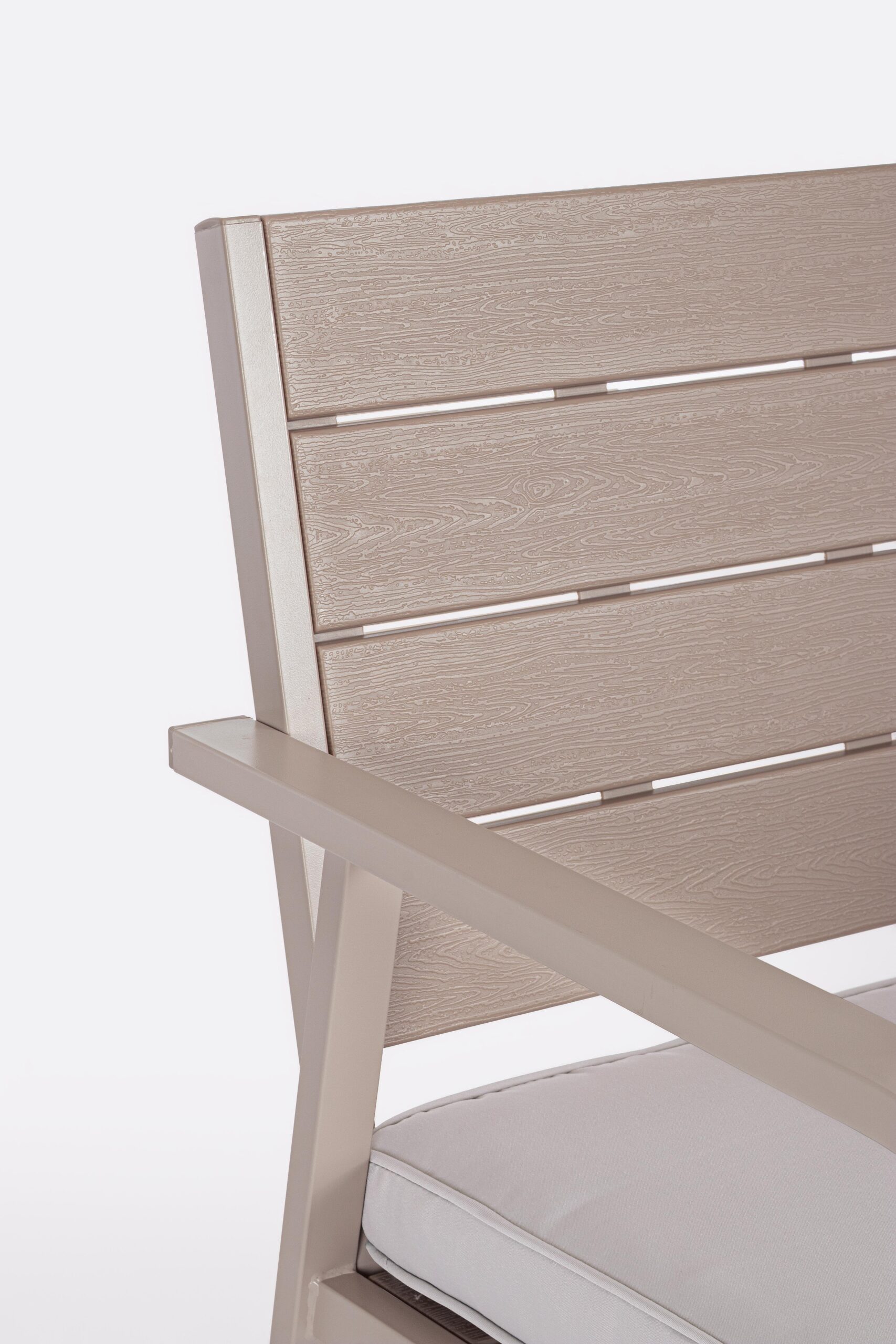 • Sedute, schienali e piano tavolino: HDPE effetto legno venato